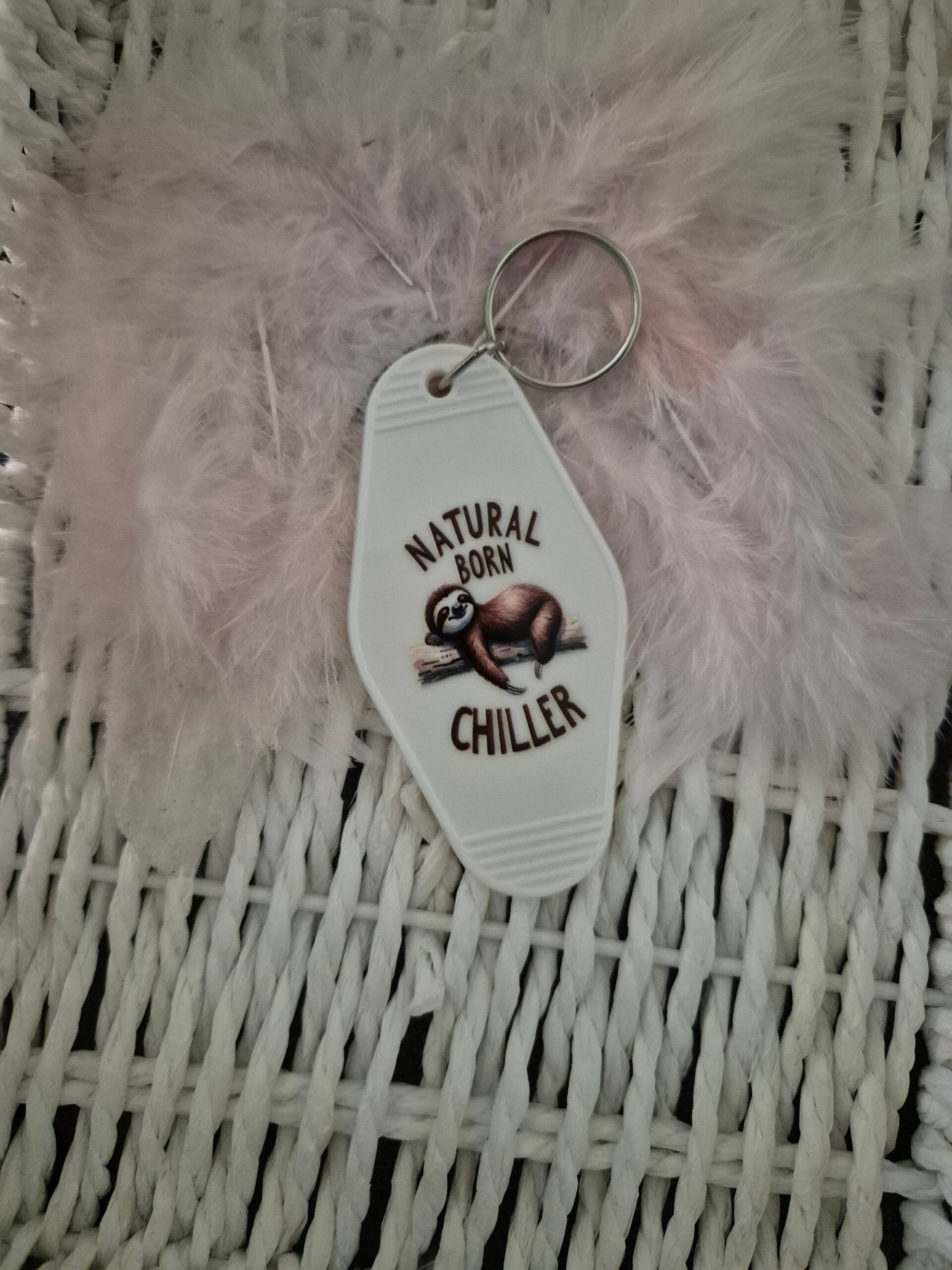 Motiv: Der Anhänger hat ein Faultier Sticker drauf.